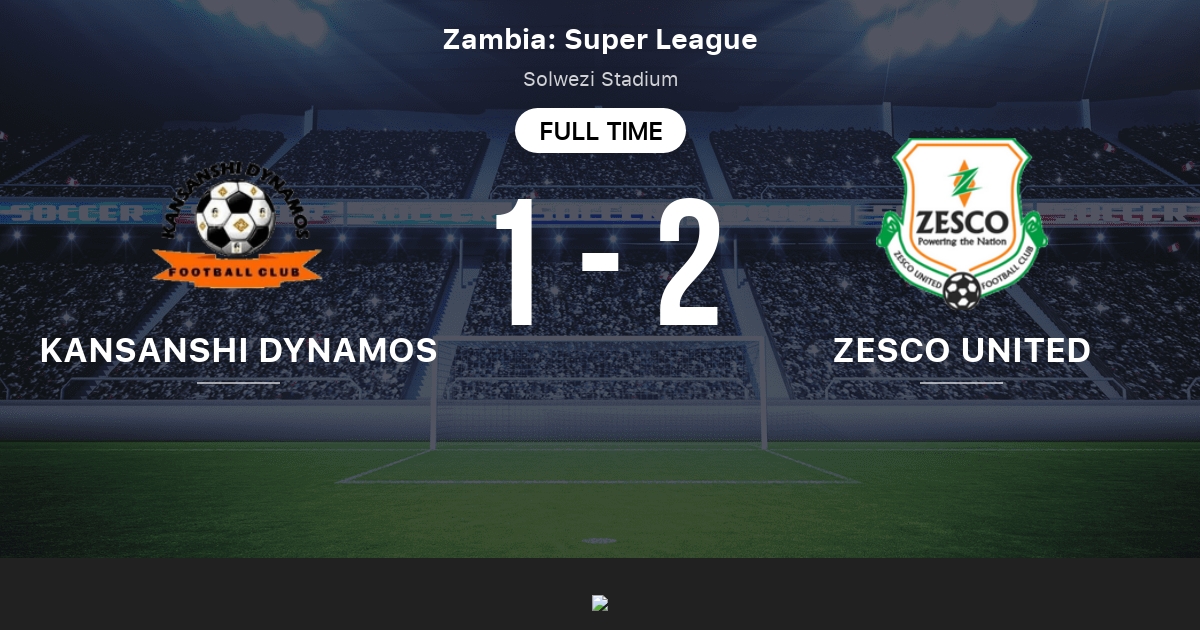Zesco United v Kansanshi Dynamos Zambia Super League Score1-1 Corner5-1 1x2 odds1333 450 700 PredictionTips. Live results Goal Scorers Half Time result Full-Time result 2nd Half result h2h head to. Home Live Matches Corners Fixtures Leagues Teams APP Widgets.